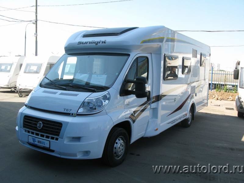 "Практичный полуинтегрированный шестиместный автодом Sunlight T67 собран на базе прекрасно зарекомендовавшего себя шасси Fiat Ducato с 6-ти ступенчато...