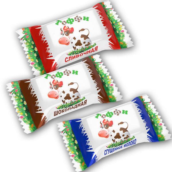Конфета «Тоффи» с кокетливой коровкой на обертке представлена тремя вкусами: со сливочным, шоколадным и вкусом сгущенного молока.