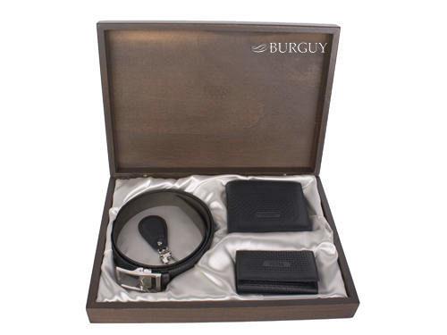"Размер коробки: 24.5 х 34.5 х 5.7 см, ремень, портмоне, ключница, брелок; Ремень - полотна 3 см, Портмоне - размер: 12,5х10х2 см, два отдела для купю...