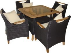"Мебельная группа ""Гармония"" Состоит из стола с краями из тикового дерева и столешницей из коричневого стекла толщиной 5 мм. Размер: 100*100*72 Цвет...