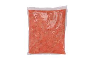 Характеристика продукта: Имбирь розовый резаный в маринаде упакован в герметичный пакет из пищевого полиэтилена. Нарезка кусочками корня без мелких об...