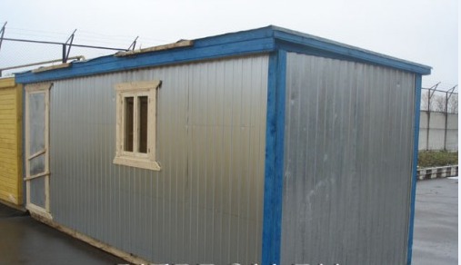 Строительная бытовка, брусовой каркас, снаружи обшита оцинкованным профлистом С-8, изнутри - ДВП.