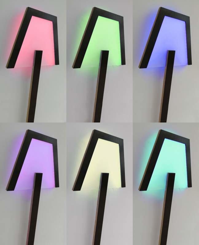 Напольный или настенный плоский торшер. Материалы - березовая фанера отделанная шпоном, лак. Многоцветная RGB светодиодная лампа. Низкое энергопотребл...