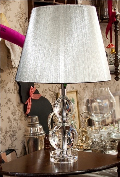 Стеклянная лампа с серебряным абажуром из ниток.