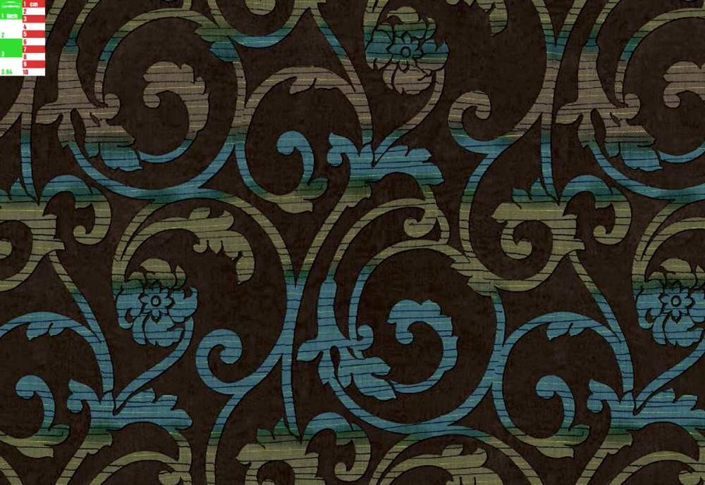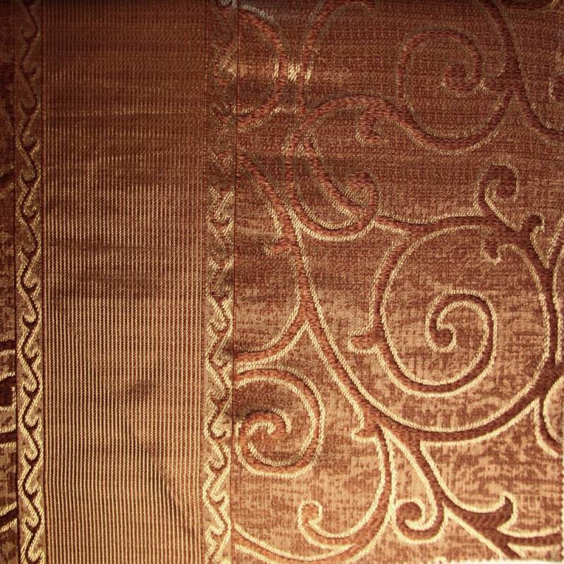 Atlas Bohemia B 07 - плотные атласные шторы терракотового цвета с вертикальными полосами и орнаментом в виде изящно изогнутых завитков. Богатая многоф...