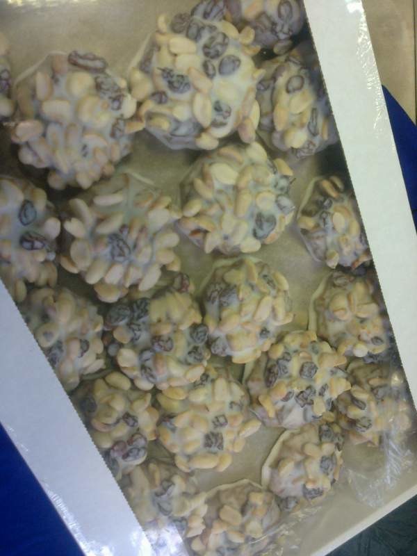 Печенье сдобное с отрубями щедро обсыпанное арахисом и изюмом на сгущен.вар.молоке