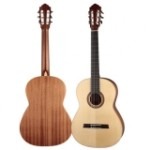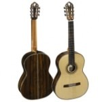 "Верхняя дека гитары выполнена из ели. Нижняя дека и обечайки из клена. Подставка из палисандра. Накладка на гриф из черного эбенового дерева. Механик...
