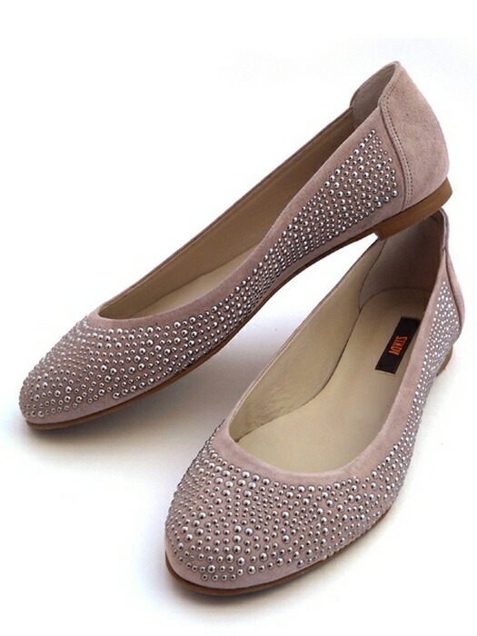 Бежевые замшевые балетки с металлическими миниклепками