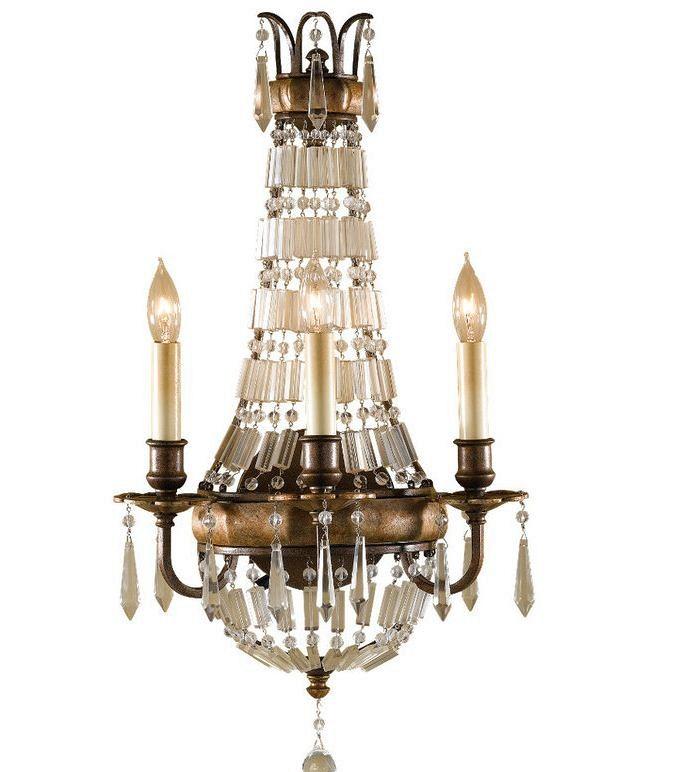 Бра из металла в цвете окисленной бронзы. Хрустальные подвески в цвете античного кварца, ручная полировка. Рассчитана на три лампочки макс. мощностью...