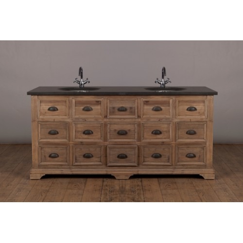 Светлая древесина тонко гармонирует с черным камнем столешницы. Классический дизайн ручек из металла и бронзы напоминает шкафы для писем и посылок в а...