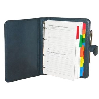 Визитница на 72 визитки (файлы - три визитки по вертикали). Кольцевой никелированный зажим. Размер: 125х195.