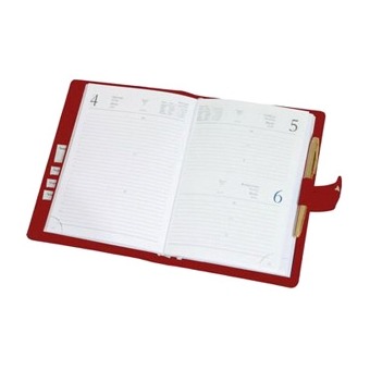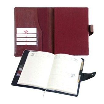 Кожаная обложка, два кармана, прорези для визиток, петля для ручки, Застежка - хлястик на магнитной кнопке. Блок формата А5, датированный. Размер: 165...
