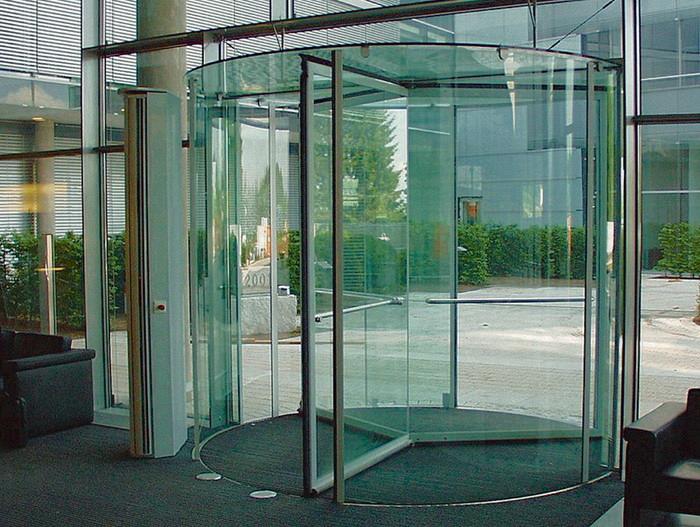 "Револьверные (карусельные) двери. ЭНТЕК предлагает револьверные двери испанской компании GRUPSA-SYSTEM диаметром от 1800 мм до 4000 мм. Двери могут б...