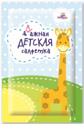 Влажная салфетка "Детская". Предназначена для ухода и очищения кожи рук у детей от 3-х лет. Размер салфетки 13*18 см., нетканый материал.