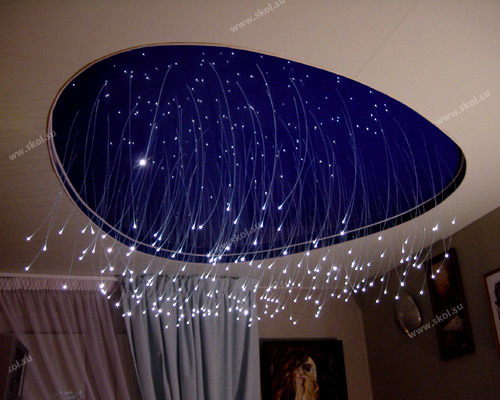Натяжные потолки. А вот для того, чтобы получить «звездопад» (этот вариант «неба» называют французским), оптико-волоконные нити не прячут, а, напротив...