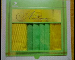 "В набор "Абсолют" входит 6 изделий: кухонное полотенце, три двусторонние салфетки для мытья посуды, салфетка пушистая для изделий из стекла, нержав...