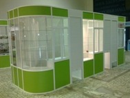 Павильоны сделаны на основе алюминиевого каркаса с заполнением из ДСП, МДФ, пластика и стекла