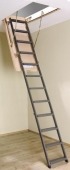 "Чердачная лестница LWM представляет собой складную конструкцию из металлического лестничного марша и термоизоляционной крышки люка бежевого цвета, вы...