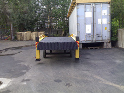 Мобильная рампа с фронтальной загрузкой/разгрузкой и без горизонтальной верхней площадки. Основной минус - менее маневренность погрузчика при погрузоч...