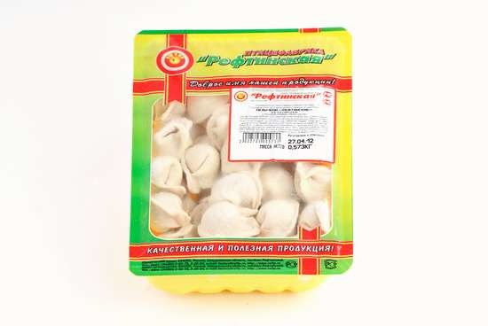 "ПЕЛЬМЕНИ «РЕФТИНСКИЕ» ЗАМОРОЖЕННЫЕ СОСТАВ ТЕСТОВОЙ ОБОЛОЧКИ: мука пшеничная, вода питьевая, яйца куриные пищевые. СОСТАВ ФАРШЕВОЙ НАЧИНКИ: мясо цыпля...