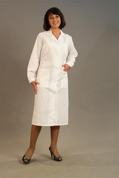 Состав ткани: 65 хлопок, 35% п/э Халат медицинский женский базового покроя прямого силуэта. Воротник отложной, застежка на петли-пуговицы. Рукав длинн...