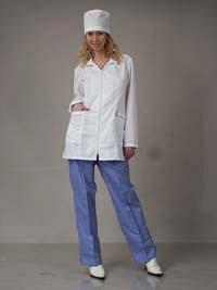 Костюм состоит из куртки, брюк. Куртка с центральной внутренней бортовой застежкой на 4 пуговицы и одну сквозную петлю вверху, со стояче-отложным воро...