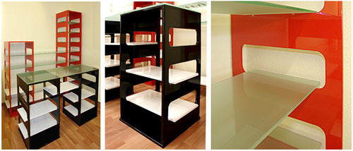 Материал стеллажей - МДФ, который окрашивается или покрывается пленкой ПВХ. Пленка ПВХ бывает однотонной или с рисунком под дерево, что дает новые воз...