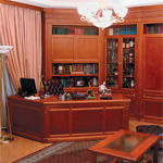 Массивная мебель из дерева, дополненная вставками из кожи - самый беспроигрышный и распространённый вариант для оформления кабинета. Делая выбор в пол...
