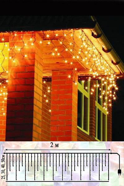 Гирлянда СОСУЛЬКИ, состоящая из 100 желтых LED-ламп, полностью влагозащищена, поэтому ее можно использовать не только в помещении, но и на улице.
