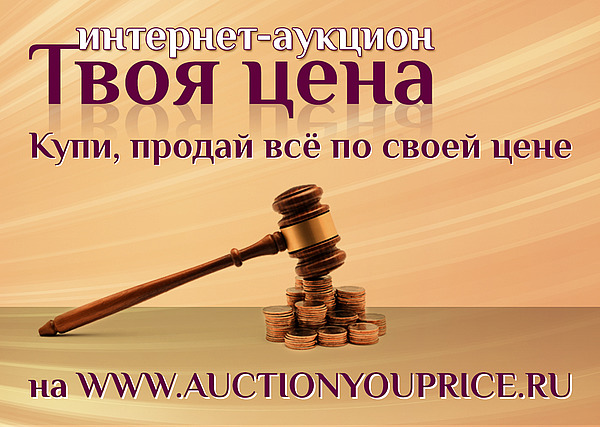 Здравствуйте друзья. Предлагаем вам новый антикризисный проект интернет аукциона "Твоя цена" на www.auctionyouprice.ru ,с помощью которого вы можете купить или продать все по СВОЕЙ цене.Формат сайта - это бесплатная доска объявления, совмещенная с предварительным торгом на автомате (экономия времени и денег). Комиссия сайта(150 руб.) за контактные данные платится, когда появился конкретный покупатель или объект(устраивающий по цене), все остальное бесплатно...)) Аукцион длится 30 дней,потом надо его продлить или удалить(если продан объект).Подробности на сайте.По техническим причинам ВСЕ бесплатно.
