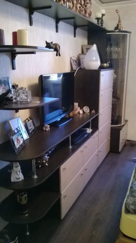 Гарнитур для спальни, много вместительных ящиков, полка для телевизора, настенные полки для сувениров. Материал — ЛДСП Венге, фурнитура Harn, Gamet...