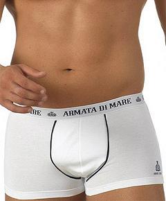 Мужские трусы-боксеры из хлопка с эластаном, сзади бесшовные, фронт декорирован контрастной тесьмой и логотипом бренда, пояс на резинке с надписью "Ar...