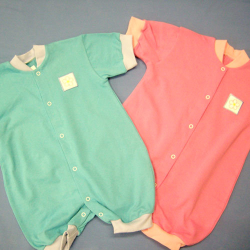 Песочник на кнопках, короткий рукав; воротник - стойка и манжеты на рукавах и штанишках из ластика, на полочке термоаппликация