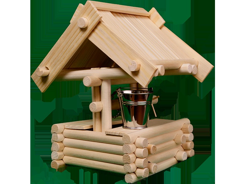 Игрушка не покрыта лаком или краской, поэтому идеальна для разукрашивания. Деревянный колодец может служить и игрушкой...