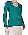 Элегантная кофта-кардиган от Elie Tahari. Застёгивается на миниатюрные кнопки с названием бренда. Очень токая и красивая вязка. Накладные карманы прид...