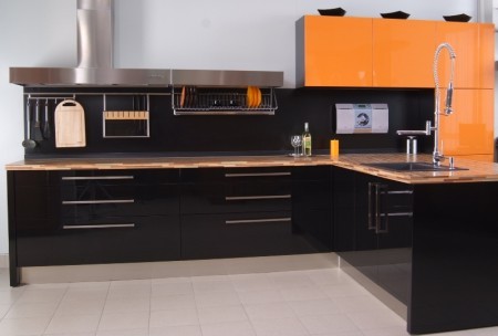 Яркая кухня, дающая возможность соединить контрастные цвета в одной кухне. Гармонично сочетаются крупные вытянутые фасады темного цвета с небольшими я...