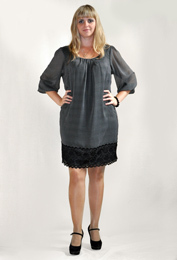 Платье свободного стиля, отделка подола кружевом. Длина изделия: 90 см Ткань: жоржет Размерный ряд: 44 - 54 Артикул: И-01