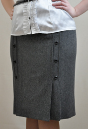 Юбка прямого силуэта со складками по передней части. Задняя половинка обработана шлицей.