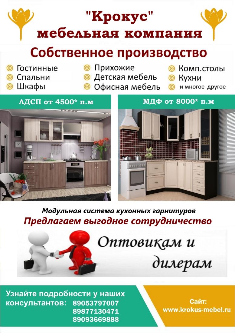 Мебельная компания Крокус производство корпусной мебели эконом и среднего класса по доступным ценам. Предлагаем взаимовыгодное сотрудничество оптовикам и дилерам.