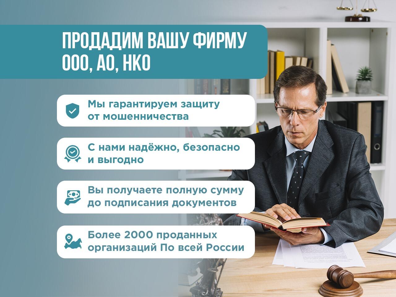 Покупаем и продаем компании по всей России. В нашем каталоге свыше 3500 организаций на продажу (ООО, АО, НКО). Готовые фирмы с лицензиями и СРО, фирмы с оборотами, историей и госконтрактами. Регистрация ООО и АО в Москве и Московской области. Юридические адреса от собственников. Мы работаем с 2000 года. Вы можете быть уверены в стабильности и надёжности нашей Компании. Наши сотрудники и руководство всегда открыты и доступны для общения с Вами. Вам всегда будет предоставлена полная и правдивая информация относительно цен и сроков оказания услуг. Вас обслуживают профессиональные юристы, имеющие значительный опыт работы в оказании юридических услуг и купле-продаже компаний. Вас ожидает доброжелательность, внимательное и уважительное отношение к Вам со стороны наших сотрудников.