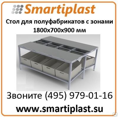 Внимание! Информация по Разделочный стол для полуфабрикатов с зоной на 4 или 8 ящиков 1800х700х900 предоставлена компанией-поставщиком Смарти-Пласт, ООО. Для того, чтобы получить дополнительную информацию, узнать актуальную цену или условия постаки, нажмите ссылку «Отправить сообщение».