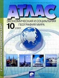 "Этот атлас может быть использован в качестве учебно-методического пособия к любому из действующих учебников для 10-го класса. Карты атласа составлены на основе статистических данных и отличаются современным содержанием. Карты первого раздела отражают главные характеристики политического устройства, населения и хозяйства современного мира в целом. Особенностью этих карт является показ территориальных закономерностей социально-экономических явлений в обобщенном виде и важнейших объектов на их фоне. В этом разделе представлено много новых карт, например "Современные формы государства", "Официальные и государственные языки" и др. Во втором разделе даны карты региональной характеристики мира, основанной на выделении историко-географических регионов. Исключение составляет территория России, которая рассматривается в качестве отдельного региона. Для каждой территории представлено по 2 карты: "Природные условия и ресурсы" и "Хозяйство", что дает возможность проанализировать роль природно-ресурсного фактора в территориальной организации хозяйства. При этом на картах хозяйства показаны крупнейшие промышленные центры и их специализация, основные ареалы обрабатываемых земель, размещение специализированного сельскохозяйственного производства, главные транспортные магистрали региона. Завершает атлас карта культурного наследия человечества, на которой отображены объекты, имеющие общемировое значение. Допущено Министерством образования Российской Федерации."