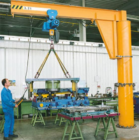 Высота подъема 5 м, угол поворота стрелы 270 град. Производство консольных кранов - это процесс, в результате которого максимальная грузоподъемность кранов достигается до 10 тонн и возможен вылет консоли на расстояние 12 метров.