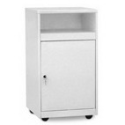 Тумба изготавливается из ламинированной ДСП (16мм) белого (серого) цвета. По желанию заказчика устанавливается на регулируемые опоры или колеса. Запираемая дверка, роликовые опоры. Масса не более 12 кг. Габаритные размеры, мм: 450 х 470 х 700.