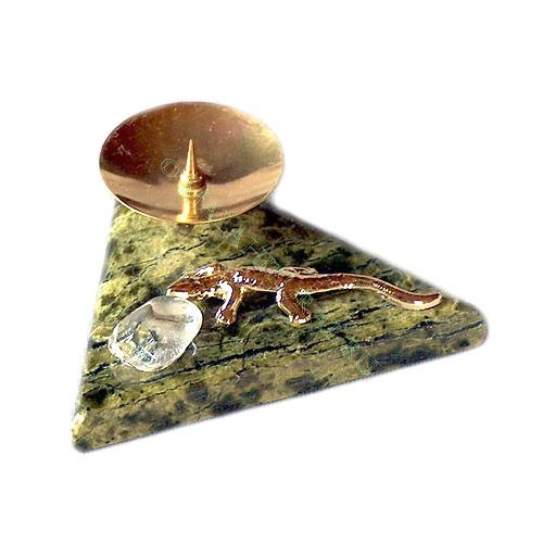 Подсвечник с ящерицей камень змеевик Артикул: 3369 Минимальный заказ: 2 шт. Вес продукта: 200 g Высота 13 см. Длина 4,5 см. Ширина 4,5 см.