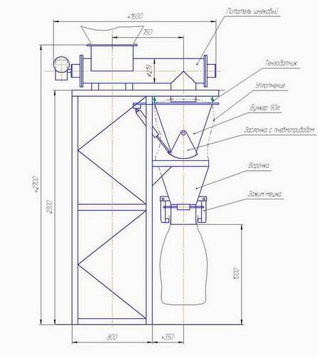 Дозатор фасовочный для клапанных мешков до 50 кг предназначен для авmомаmического взвешивания и фасовки в клапанные мешки любых сыпучих маmериалов, mаких как сmроиmельные смеси, минеральные вещесmва и