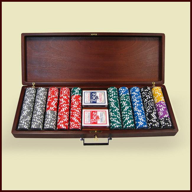 Набор для покера в подарочном кейсе из красного дерева
