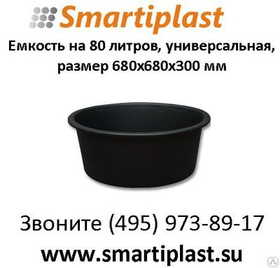 Внимание! Информация по Пластиковая ёмкость 80 литров 680х680х300 мм круглые емкости универсальные предоставлена компанией-поставщиком Смарти-Пласт, ООО. Для того, чтобы получить дополнительную информацию, узнать актуальную цену или условия постаки, нажмите ссылку «Отправить сообщение».