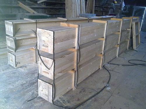 "Ящик для крупногабаритных грузов Форма ящика определяется спецификой упаковываемой металлопродукции. На изготовление ящиков кубической формы расходуют меньше материала, чем на продолговатые, однако они более неудобны при перегрузках и соответственно более подвержены повреждению. Такая форма ящиков пригодна только при небольшой массе и малых габаритах. Как показывает опыт, значительная часть повреждений ящиков при транспортировке вызвана неправильной или некачественной сшивкой гвоздями. Для сшивки ящиков следует применять гвозди круглой формы, так как квадратные или желобчатые разрушают волокна древесины. Сдерживающая сила гвоздя при одной и той же породе древесины зависит, в первую очередь, от площади его соприкосновения с древесиной. Поэтому не рекомендуется применять гвозди слишком большого поперечного сечения, так как в результате расщепления древесины сопротивление выдергиванию уменьшается. Хорошие результаты дает попеременное наклонное вбивание гвоздей на расстоянии около 30 мм друг от друга. Этим предотвращается расщепление древесины и исключается самопроизвольное приподнимание или разъединения досок. Толщина и длина досок определяются в зависимости от толщины дощечек (длина гвоздя должна равняться 2,5-3- кратной толщине доски). Существуют рекомендации относительно количества гвоздей в зависимости от размеров доски: для доски шириной 80 мм - 2 гвоздя; от 80 до 130 мм - 3 гвоздя; свыше 130 мм - 4 гвоздя;"