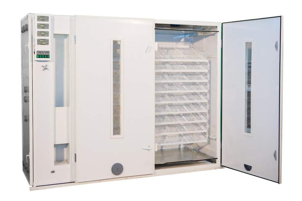 ![]() Предназначен для инкубирования яиц любых видов птиц: кур, гусей, уток, индеек, цесарок, фазанов, перепелок, и других птиц. Одновременный вывод разных видов птиц не рекомендуется. Птица, вес одного яйца Вместимость инкубатора, шт. яиц, пуго вверх / на боку Курица, 54-62 г 3267 / 2367 Гусь, 140 г --- / 1269 Индейка, 91 г --- / 1566 Утка, 75 г --- / 1917 Цесарка, 44 г 4050 / --- Фазан, 31 г 4590 / --- Перепел яичный, 12 г 8910 / --- Перепел мясной, 15 г 7020 / --- Технические характеристики Корпус Металло-пластиковый (сварной стальной каркас, сэндвич-панели, лотки из оцинкованной сетки с порошковой покраской , ударопрочное стекло) Количество лотков 27 Размер лотка, см 44 х 49 х 7 Вес собранного, кг 240 Вес разобранного инкубатора, кг 180 + 60 Габариты собранного (высота х ширина х глубина), м 1,75 х 2,25 х 0,75 Габариты разобранного (транспортные), м 1,7х(1,75 х 2,25 х 0,75) Перевороты Автоматические на угол от ±20° до ±45° интервал перевортов от 30 мин до 6 ч регулировка с точностью до 1 мин или механические Влажность Поддерживается автоматически на заданном пользователем уровне с возможностью регулировки. Система терморегулирования двойная Контролируемые параметры Температура, влажность, не открывая инкубатор Диапазон настройки температур,°С, не менее 20,00-39,90°C Поддержание температуры в центре инкубатора при изменении внешней температуры на ±3°С, °С ±0,15°C Поддержание температуры при изменении напряжения питания на ±10В (210-230В),°С ±0,15°C Максимальная мощность, потребляемая от сети при загрузке холодных яиц в рабочем режиме при напряжении 220 В бех подсветки / с подсветкой 680 / 980 Вт Средняя мощность, потребляемая от сети при внешней температуре 23°C при закрытых заслонках / открытых заслонках/ при обдуве вентилятором и открытых заслонках 450 / 540 / 580 Вт Питание от однофазной сети 220 В 50 Гц Защита от перегрева Автоматическое охлаждение и сигнализация Вас также могут заинтересовать Цифровой автоматический инкубатор"Цифровой автоматический инкубатор ТГБ-210ВА Особенности инкубатора: • Используется для инкубации и вывода птенцов • Повышенная выводимость - биоакустический стимулятор • Цифровой терморегулятор • ПроЦифровой автоматический инкубатор РЭМИЛ?1000ЦУИнкубатор РЭМИЛ?1000ЦУ Предназначен для инкубирования яиц любых видов птиц: кур, гусей, уток, индеек, цесарок, фазанов, перепелок, и других птиц. Одновременный вывод разных видов птиц не рекоменЦифровой автоматический инкубатор Рэмил-2000ЦУЦифровой предварительный инкубатор Рэмил-2000ЦУ Предназначен для инкубирования яиц любых видов птиц: кур, гусей, уток, индеек, цесарок, фазанов, перепелок, и других птиц. Одновременный вывод разныАвтоматический инкубатор Vega S7 LED (на 700 яиц)Автоматический инкубатор для яиц Vega S7 LED Вместимость инкубатора 700 яиц Фермерский Инкубатор на 700 яиц Vega S7 LED это совмещенный инкубатор, в котором можно, как инкубировать, так и выводить цыпАвтоматический инкубатор Vega S 12 LED на 1200 яицОписание Автоматический инкубатор для яиц Vega S 12 Вместимость: 1200 куриных яиц, гусь- 450-500 яиц, перепела- 3600 яиц, индюшка и утка- 705 яиц. Все подробности на официальном сайте Волгасельмаш. За